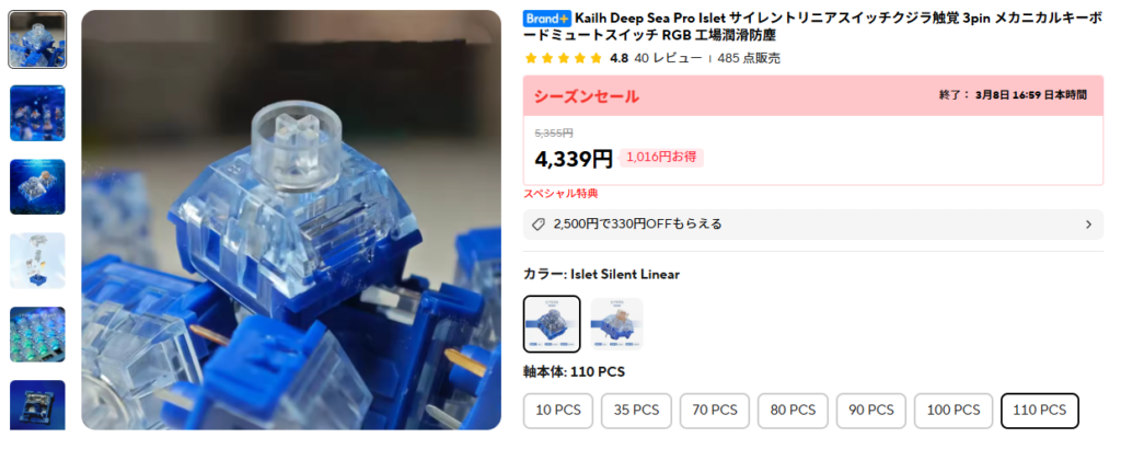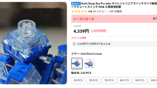 赤軸とか青軸なんて言うレベルでは無く、コトコト感がスコスコ感かと言う完全に別物になるので、静音が良いという人ならこのスイッチはかなりお勧め出来るだろう。