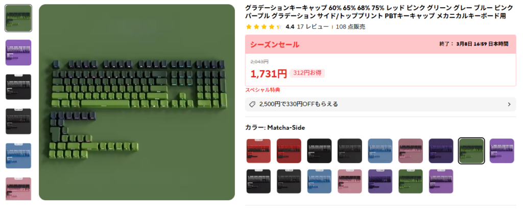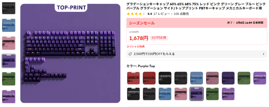 このパープルのグラデーションも良いなぁと思って現場で使っているキーボード用に注文した。