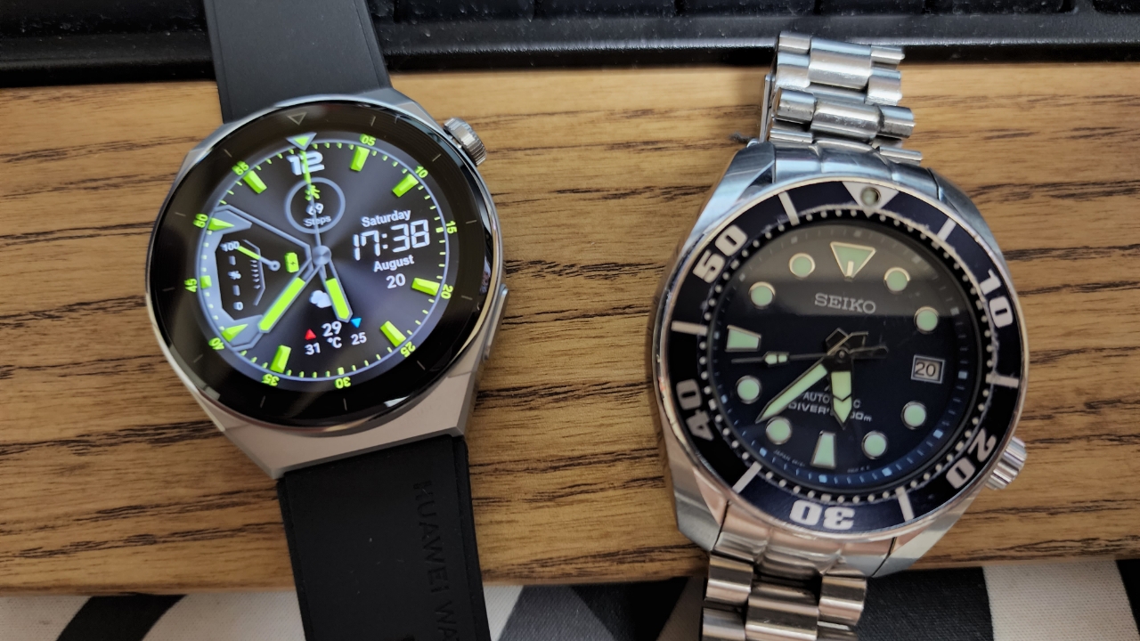 それにこの文字盤は常時点灯の文字盤もセットされているので、常時点灯状態の文字盤の針も太めの良い感じのデザインの針になって案外良い。