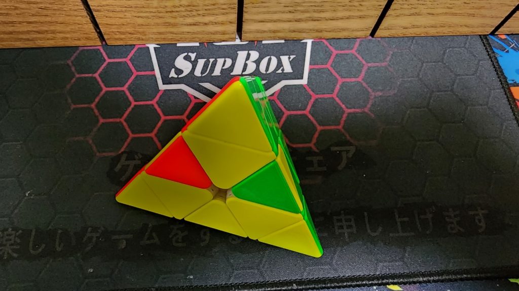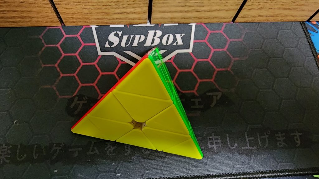 ピラミンクスは頂点をまずは回して揃えて、コーナーを定位置に持ってくる。