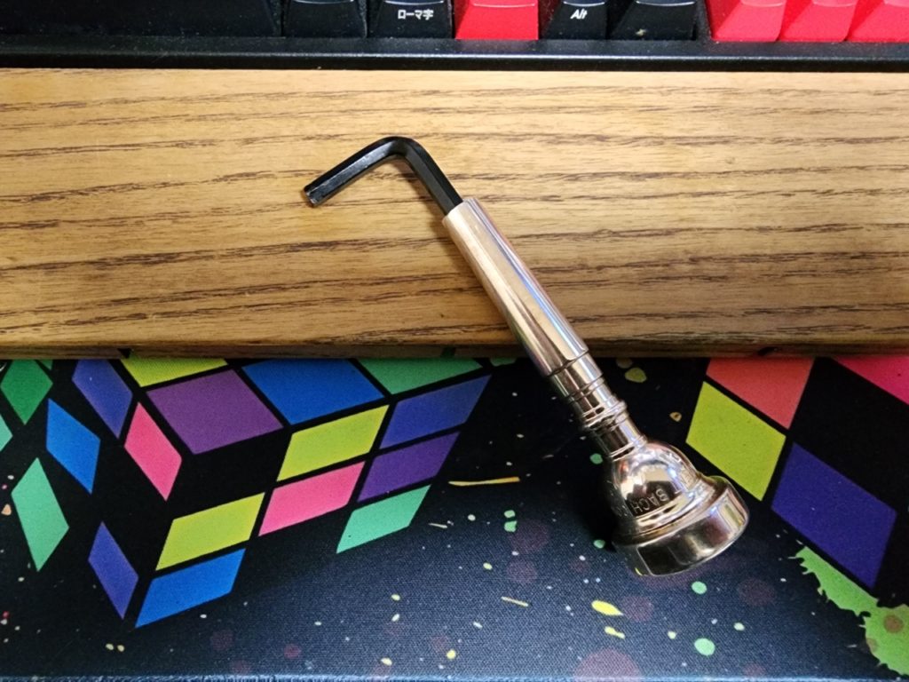 ちなみに付属の六角レンチに側にあったマウスピースを使ってみたところ、丁度上手くはさまってかなりしっかりとネジを締め付けることが出来た。