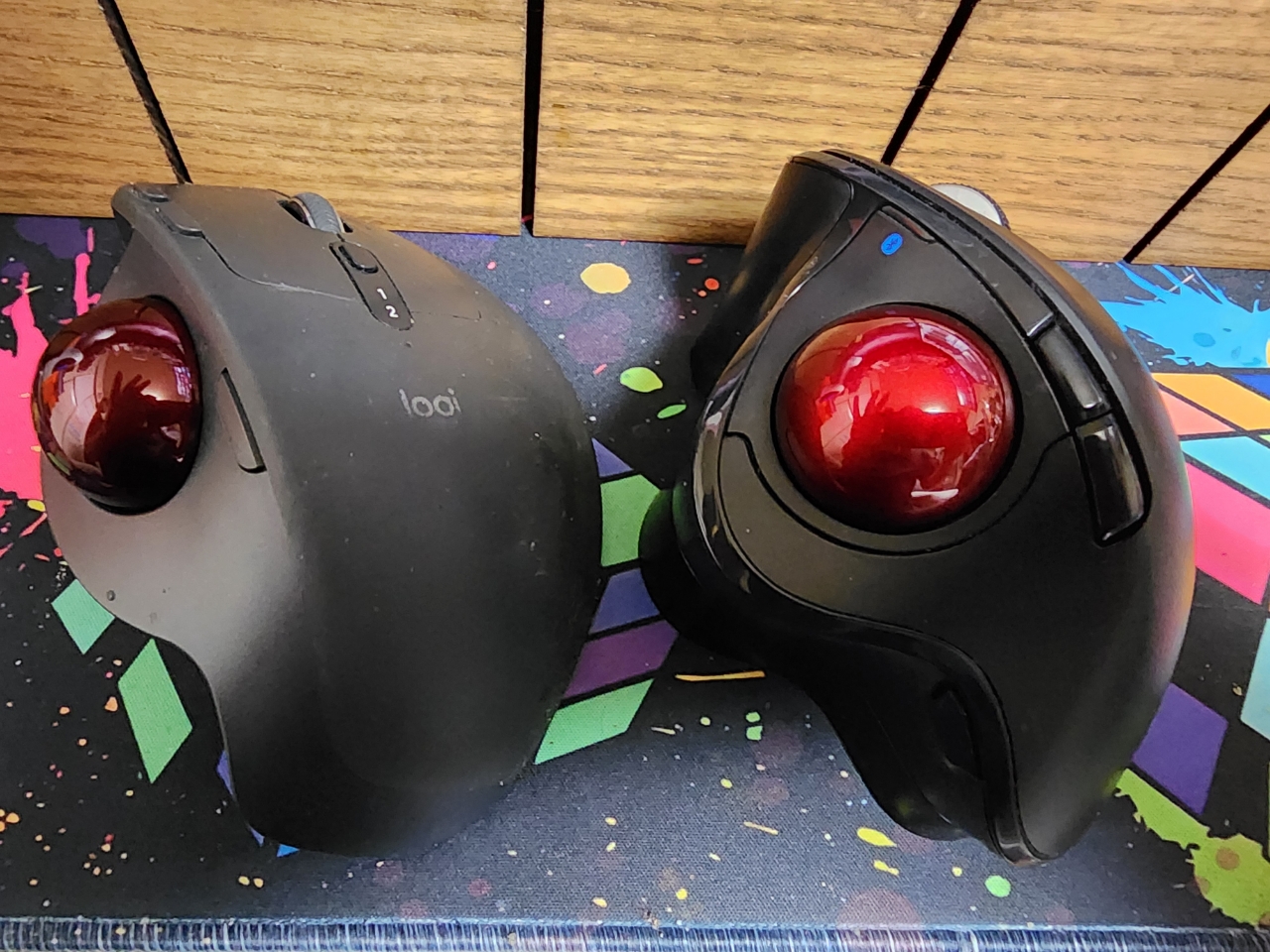俺がウチで使っているトラックボールで左はLogiのElgoで言わずもがなだが、右はナカバヤシのとても会社で使えない恥ずかしいトラックボールだ。
