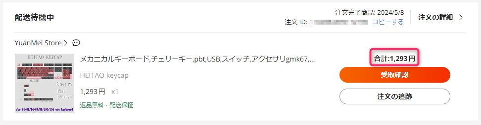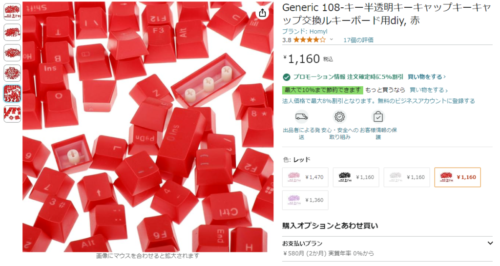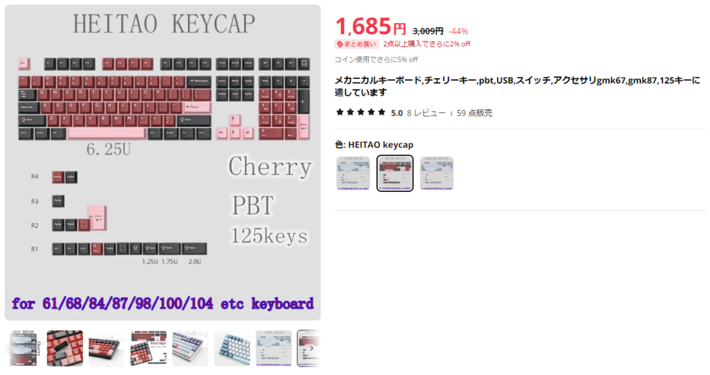 しかし、俺の気を引くキーキャップが見つからず、取りあえず赤系で探していたらアリエクのタイムセールで同じくらいの金額で良さそうなキーキャップが出ていたのでGetした。