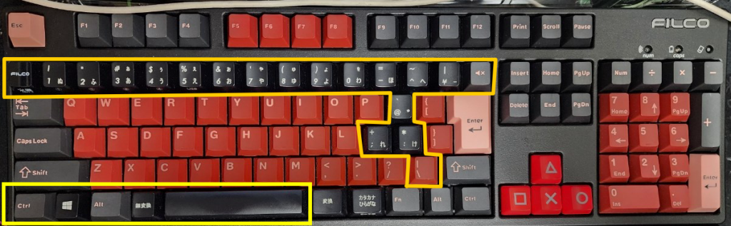 なので、元々のキーキャップはキーボード側の1~BSまではオリジナルのまま。