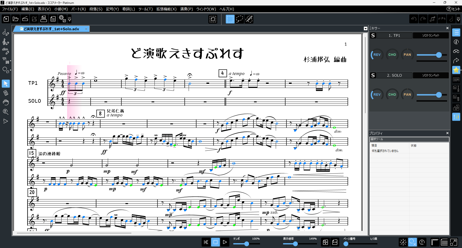 とはいえ、少なくとも一度は聴いた曲なので一度聞いたらすっと耳馴染みも良く、ソロが別楽譜になっているので、ソロと1STを合体させて楽譜を作ってみた。