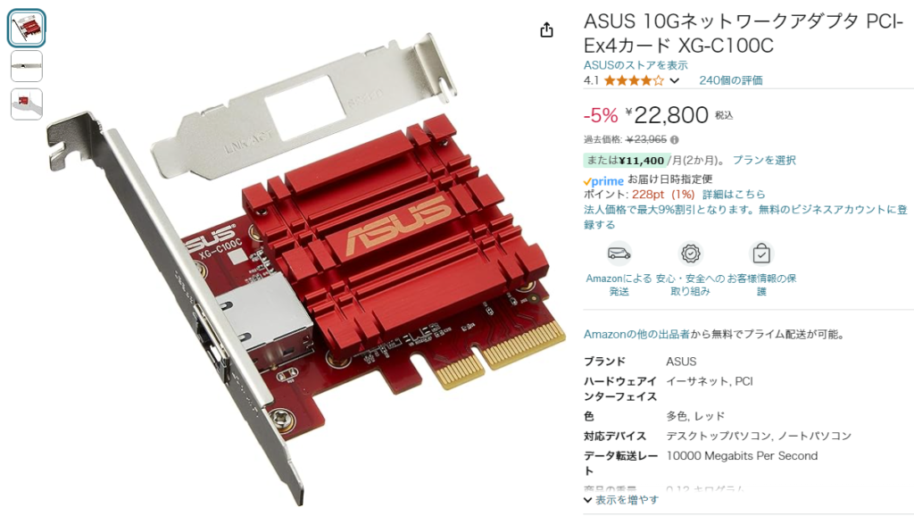 まだ、こないだから情報集めているので良くわかっていないが、取りあえず、ヨドバシカメラには10G対応のPCは売ってなかったし、10G対応のLANボードも無かった。