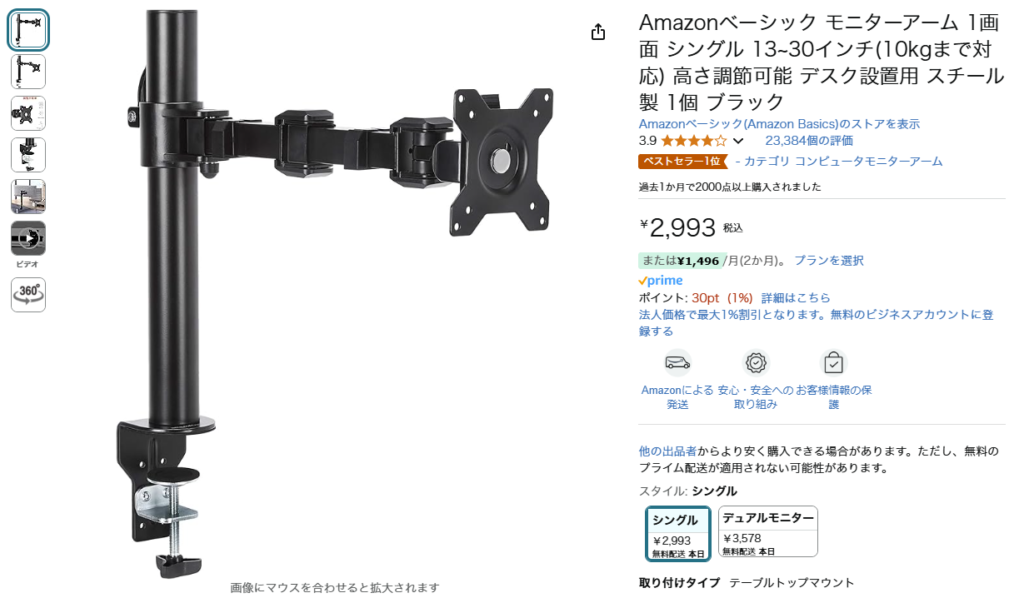 この手のモニターアームはちょっとお高いのでシャフトに嵌めるタイプのモニターアームを使ってマルチモニターを構成していた。