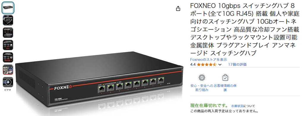 HUBはドコモ10Gにしたこともあってこの8ポート全部10GのHUBがあったのでこれにしたが今は在庫切れのようだ。