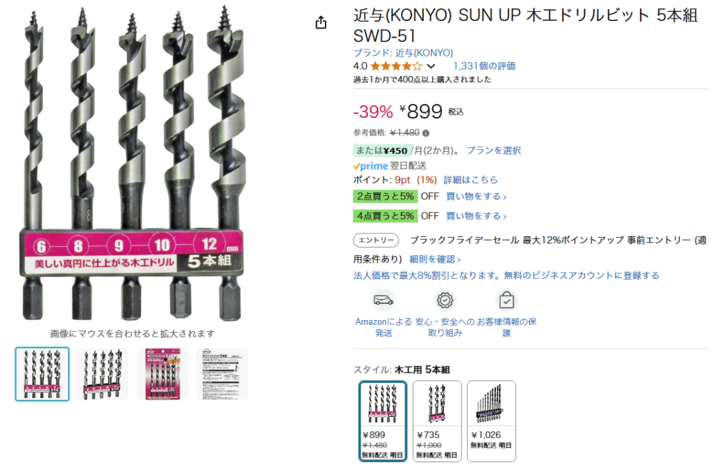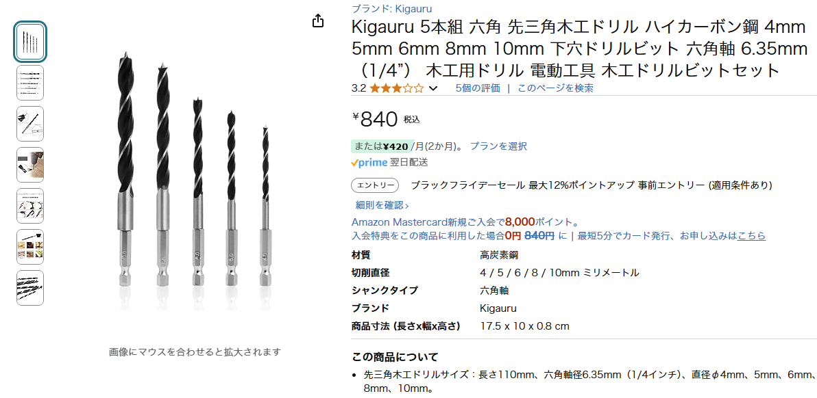 こう言う機能性を重視する製品と言うのはいくら安くてもちゃんと目的が果たせるかが重要で、最初に買ったドリル刃は単体ではたかが数センチの板に穴を開けるのに1時間はかかるんじゃ無いだろうか。