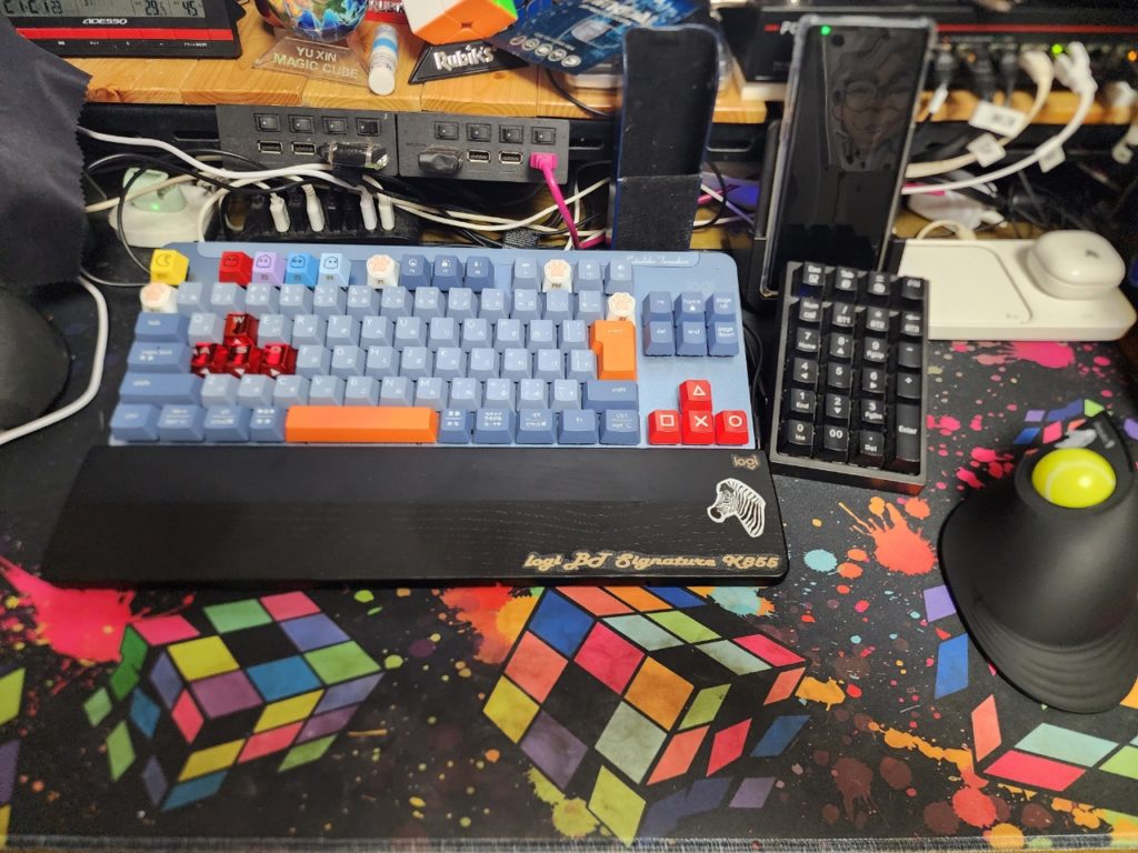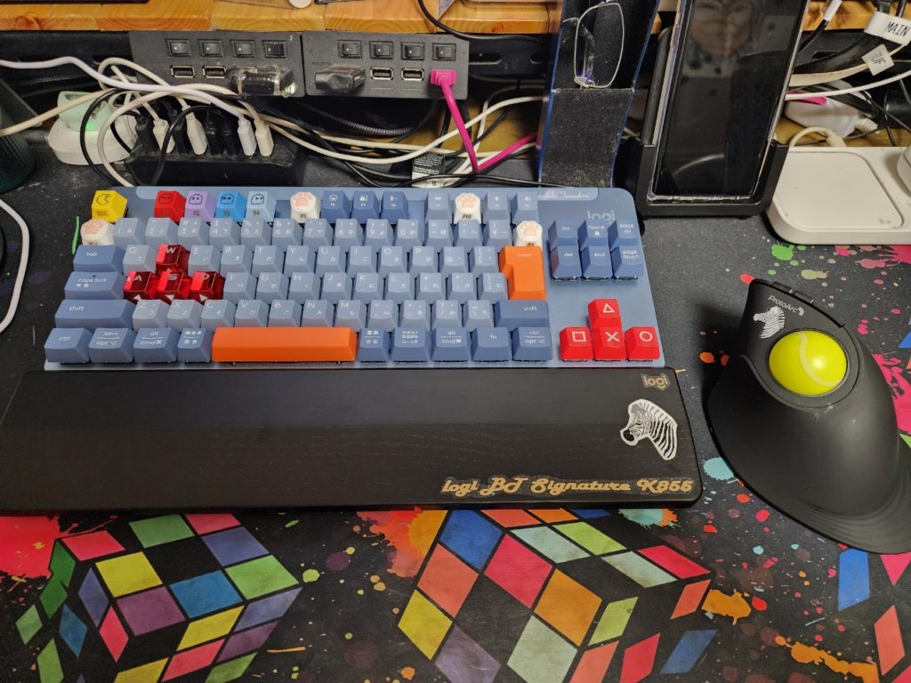 テンキーレスのK855の場合は、単にテンキーが無いだけで、基本的にはキーの位置関係は変わらないので、そのまま使えるし、カスタムしていたキー自体も四角なので今までのストックも流用出来るし利便性でK855に決めた。