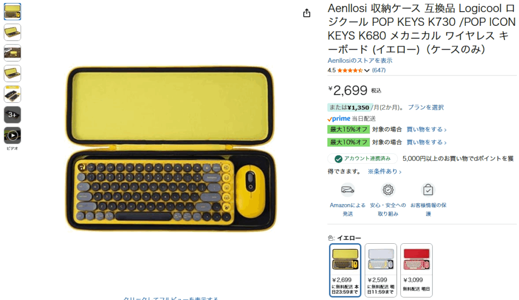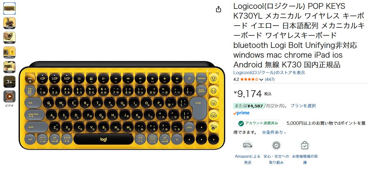 このlogi の POP KEYS K730YL なんだが、一番最初にエディオンを散策しているときに見つけて思わず欲しくなった。