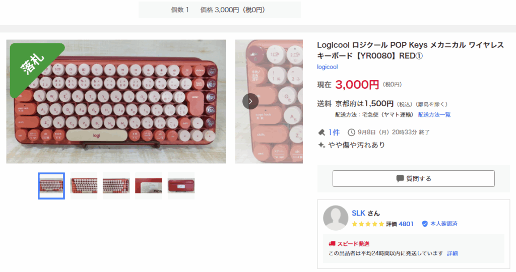 オークションで落札したPOP Keysなんだが、クーポンが使えて実質2千円で落札