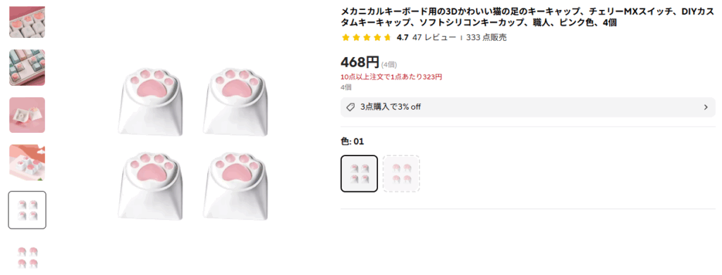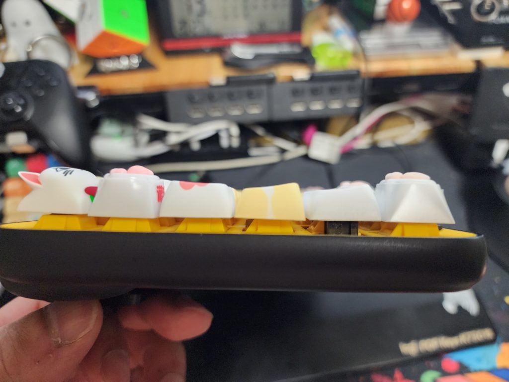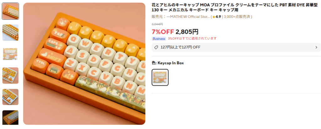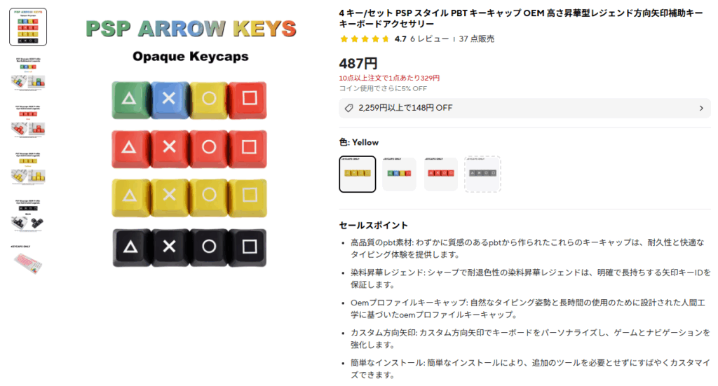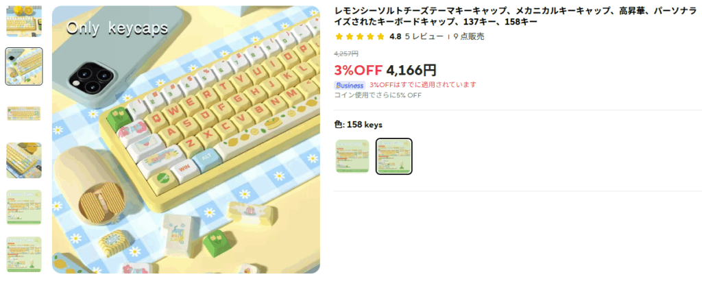 まず、アリエクで角丸のPOP感のあるキーキャップを探してこのレモンシーソルトチーズケーキテーマキャップと言うのを見つけ、俺が買った時は3千円だったが今は4166円になっているので、時期を待てばまた安く買えると思うが、まぁ金額はさておき、このキーキャップなら黄色基調の良い感じのキーボードになるなぁと思ってこれをチョイス。