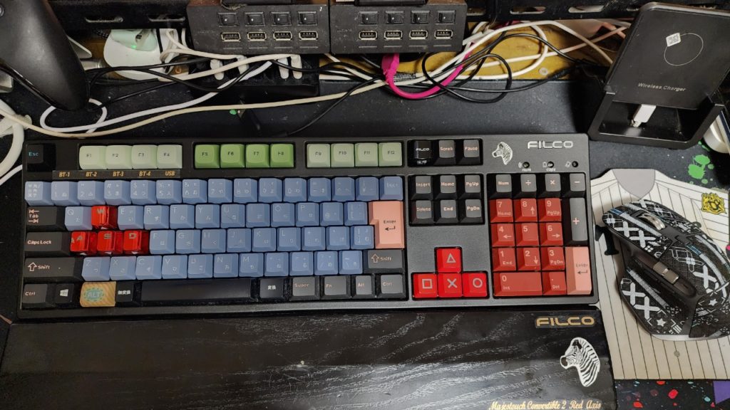 そして、折角のブルーキャップがこんどは無駄になるので、FILCOの10年来の愛用キーボード、もはやメカニカルキーボードの殿堂 Majestouch Convertible2にはめて見た。