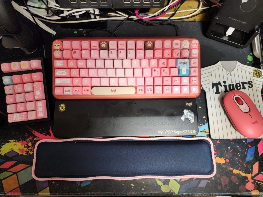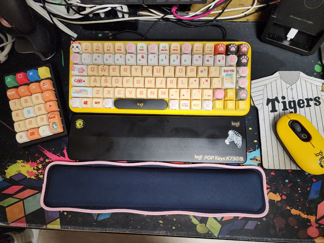 普通にテンキーレス買えば良いじゃんと思うほどださすぎるので、ちゃんとPOP感マシマシでキーキャップを交換して、尚且つ入力ミスも改善出来るキーボードを作ってみたと言うわけだ。