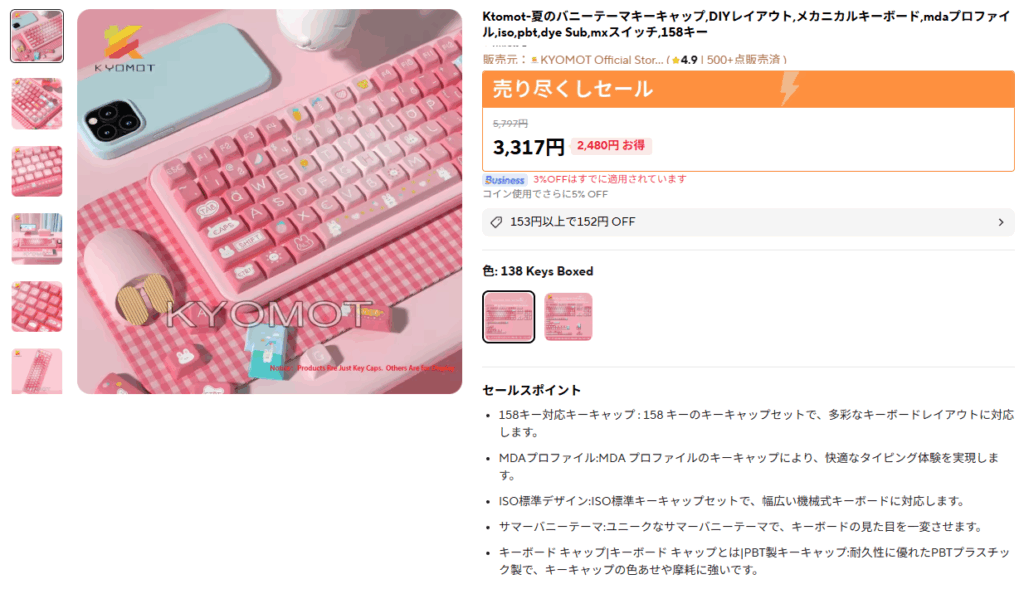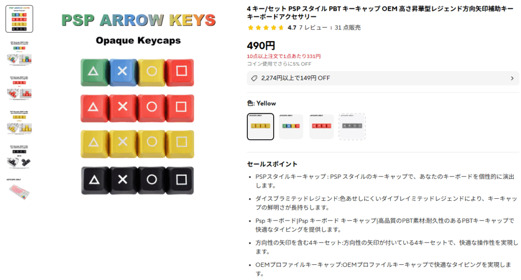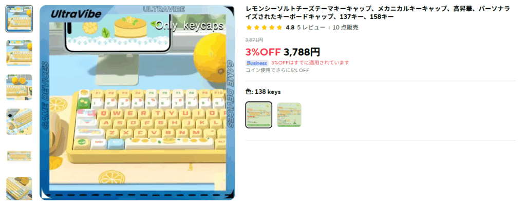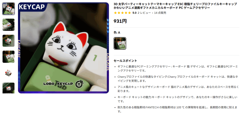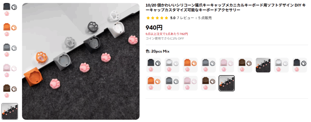 但し、日本語配列のキーキャップでPOP感のあるものは皆無なので、英語配列を買うしかない。