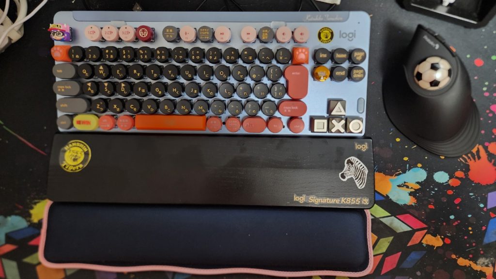 ESCにはニャンコ先生を配置してニャンコ先生キーボードなんだが、キーキャップは色々換えたが最終的にlogi Signature K855のキーキャップを流用している。