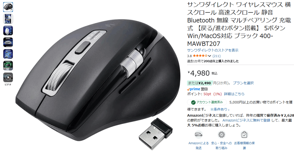 サイズ的に一回り小さく、軽いのに、サムホイール付のサンワサプライから発売されているマウスがある。